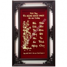 Nội dung khánh vàng tranh thư pháp chữ Tài  Đức hai câu đối, có thể đổi thành thư pháp chữ Tâm hoặc chữ tài tùy người tặng.