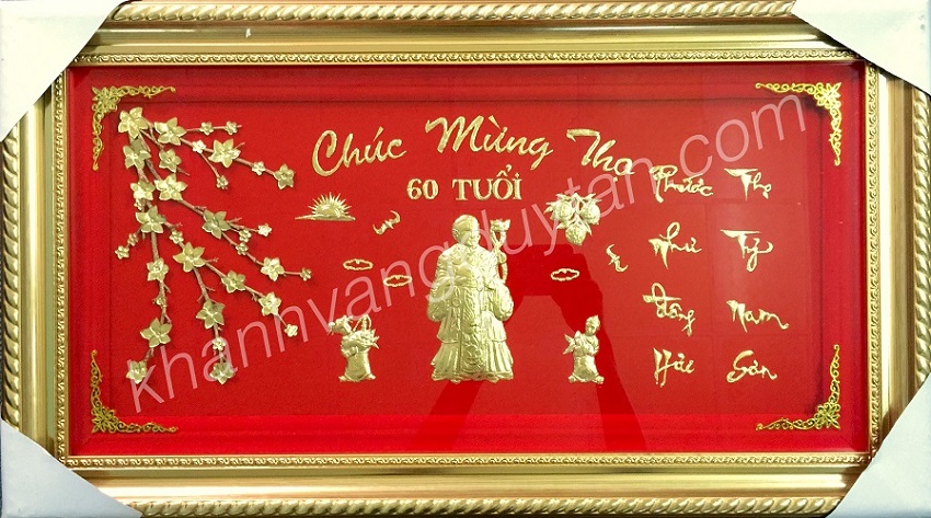 Cơ sở Duy Tân chuyên sản xuất và phân phối mặt hàng tranh chúc thọ, tranh mừng thọ ông bà bằng vàng với rất nhiều mẫu mã đa dạng, ý nghĩa mà quý khách có thể chọn lựa phù hợp với tuổi của người được tặng, thay vì phải chọn quà mừng thọ ông bà là những bức tranh sơn mài hay tranh vải, tranh thêu làm quà quà tặng thì quý khách có thể thử tìm hiểu về các loại khánh mừng thọ sau: